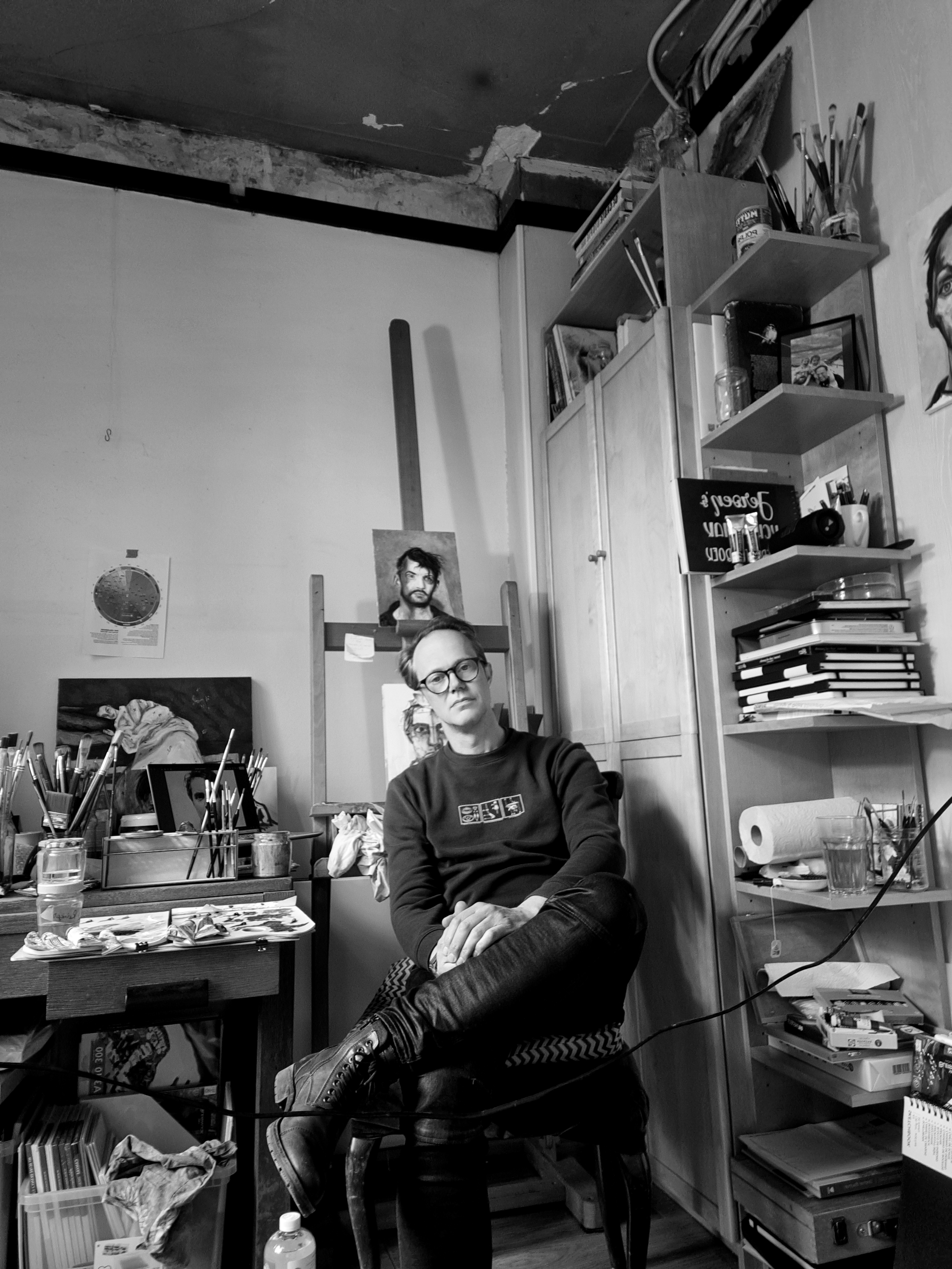 Jeroen van den Wijngaard is a Dutch self taught painter living and working in Utrecht. Inspiration is found observing people, building a connection without judging and permitting the viewer of the work thereby to experience the fragile existence as is. Jeroen works primarily with oil paint, some works are found in private collections.